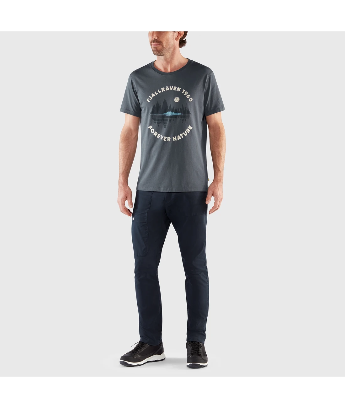 Herren T-Shirt aus Bio-Baumwolle mit einem landschaftlichen Grafikprint auf der Vorderseite.