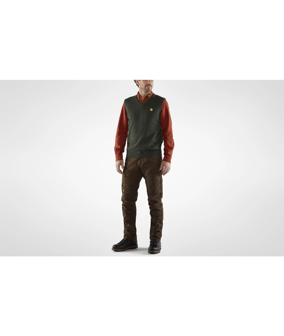 Klassische Strick-Weste mit V-Ausschnitt, perfekt zum Tragen über einem Hemd. Eine zeitlose, praktische Mittelschicht, die dort Wärme spendet, wo sie am nötigsten ist: am Oberkörper; gleichzeitig ist sie ein leichtes, atmungsaktives Kleidungsstück. Wolle leitet Feuchtigkeit ab und wärmt auch noch in feuchtem Zustand. Perfekt zum Wandern, für die Jagd und für den Alltag während der kalten Jahreszeit.
